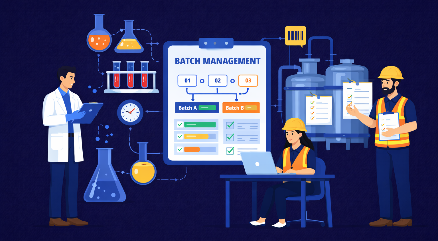 BatchM replaces manual coordination and fragmented batch tracking with a single automated digital platform — giving every team member, from executor to process manager, complete clarity over what needs to happen, when, and by whom.