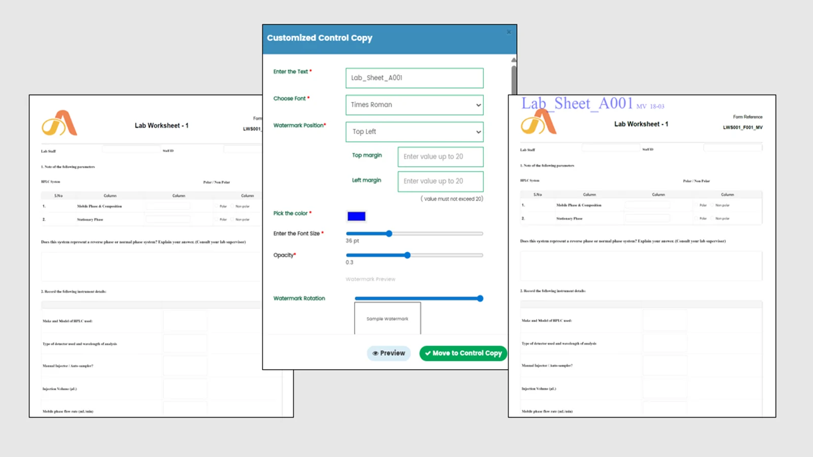 E-SignM enables the generation of uniquely watermarked control copies stored in access-restricted folders, clearly identifying official, compliant-approved versions.